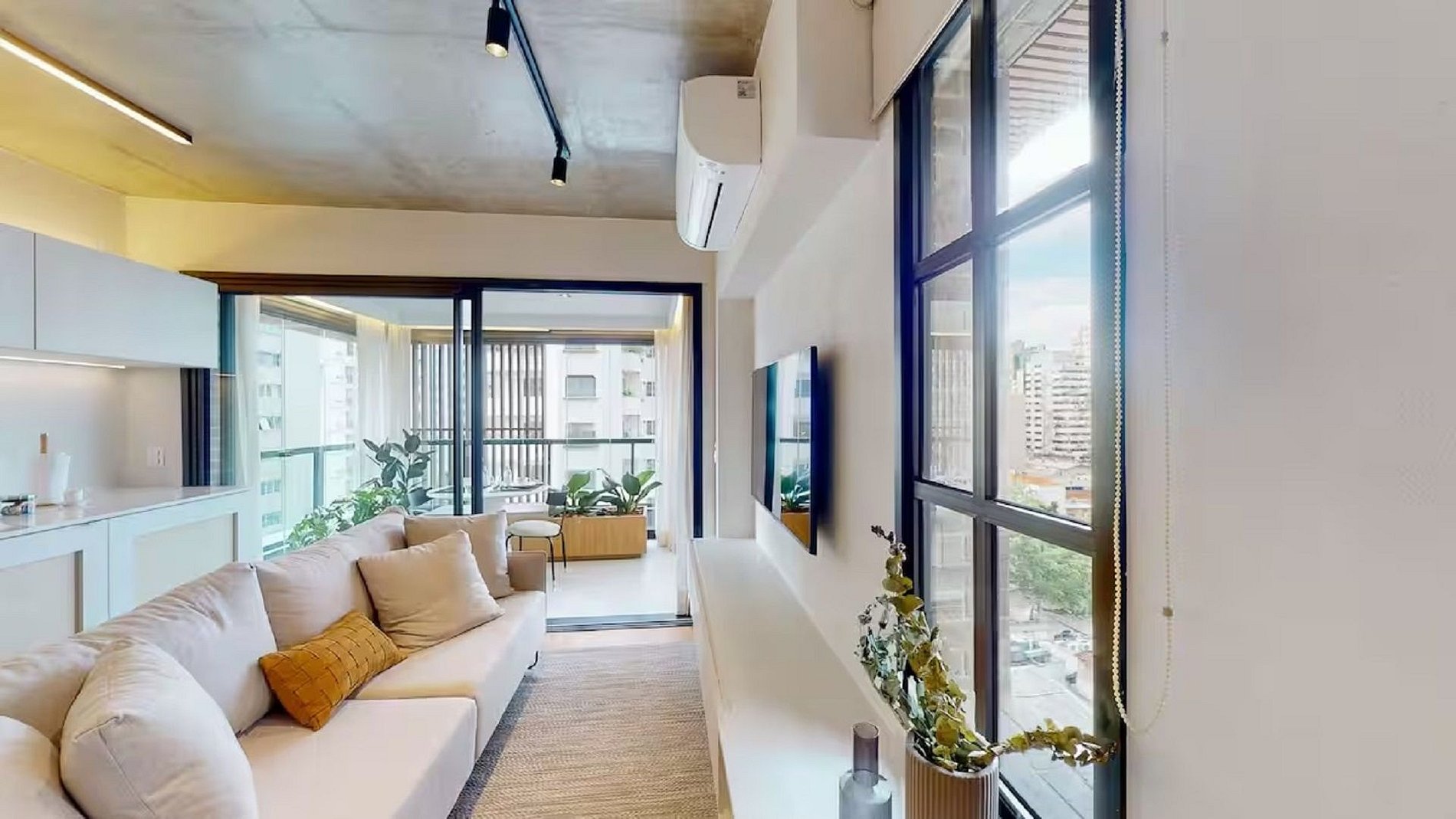 Apartamento todo equipado e mobiliado para desfrutar uma experiência única e sentir em casa em SP. A decoração de alto padrão foi pensada para integrar os ambientes de forma que seus dias na cidade se tornarão inesquecíveis. Com 47 m2, um quarto, banheiro, ar-condicionado, Tv com internet Smart, wi-fi, cozinha toda equipada, o apartamento pode receber um casal com toda comodidade e praticidade necessárias. A sacada com vista para SP convida para um café da manhã tranquilo e confortável.
